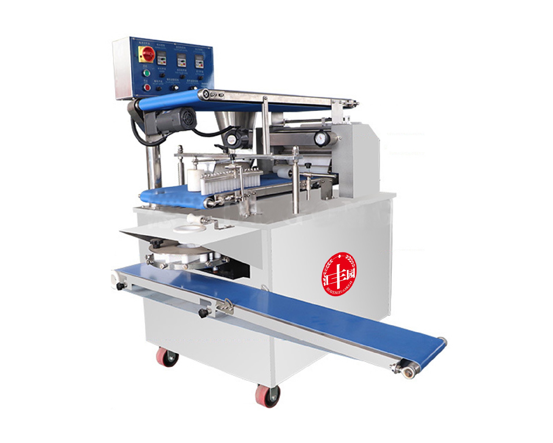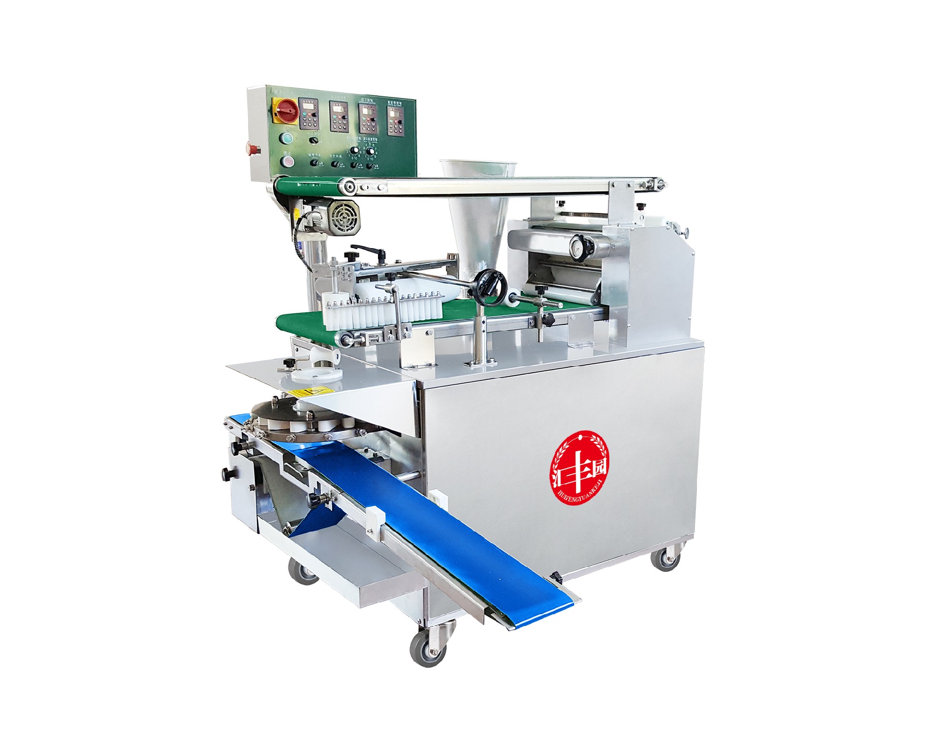 仿手工包子機采用仿手工搟面的方式將面皮壓成合適厚度。再由出餡部分將餡料填充至面皮上,經由卷面部分卷成圓柱形狀,傳送至成型部分成型,過程中不會破壞面皮筋性,保持手工原味。全機的工作部分主要由:送面系統、壓面系統、送餡系統、卷面系統、成型等五部分組成。工作流程:供餡料斗-〉供面斗)-〉包制-〉切斷成型-〉傳送帶-〉醒發-〉蒸制;優勢:自帶壓面系統,采用壓面輥漸進仿手工搟面方式將面皮壓成合適厚度,整個過程不會破壞面皮筋性。面皮柔軟筋道。 可加配值可生產:餡餅和方型饅頭、圓饅頭等。成型盤采用軸承傳送,配合刀塊張合防止以前包子機做大包子成型堵面現象。有9褶或12褶和16褶花型供用戶選擇,進口高分子材料刀塊利用科學原理均衡受力減小,解決了其它包子機成型刀塊靠一塊主刀推動其它副刀運動易磨損,刀夾面粘面,易受天氣變化而熱脹冷縮不能正常生產的難題,促進機器穩定延長使用壽命。